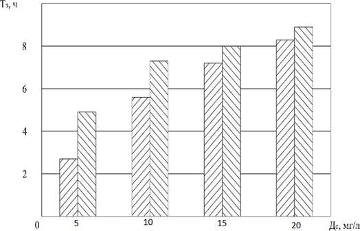 расходов промывной воды. Такое условие соблюдается при дозах сорбента Dс=10-12 мг/л, обеспечивающих средние значения Тз на уровне 6-7 часов. При периодическом