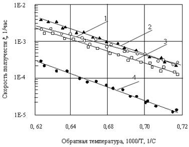 теплопроводности таблетки всех вариантов прошли испытания на ползучесть (оценка скорости ползучести от обратной температуры испытания),