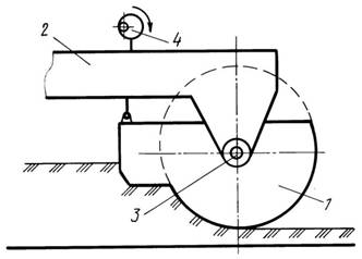 плита; 2-рама асфальтоукладчика; 3-шарнир;