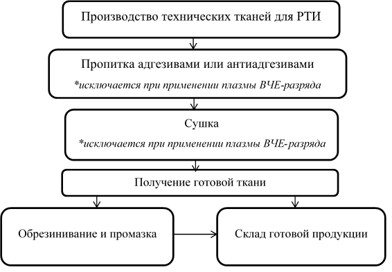 схема производства технических тканей для РТИ с помощью плазменной обработки