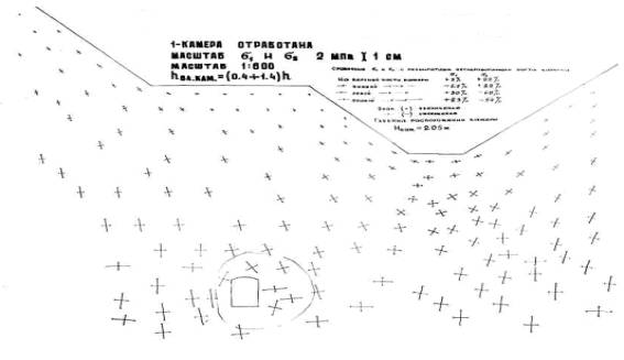 1- камеру на глубине 205 м от подошвы левого борта. Результаты расчета показаны
