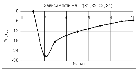 Х1 = Х2 = 1…10 и Х3 = Х4 = 1…0,1, то в этом случае Ре будет иметь большое