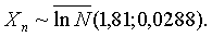 оценок параметров µ и σ2 посредством использования метода моментов, имеем