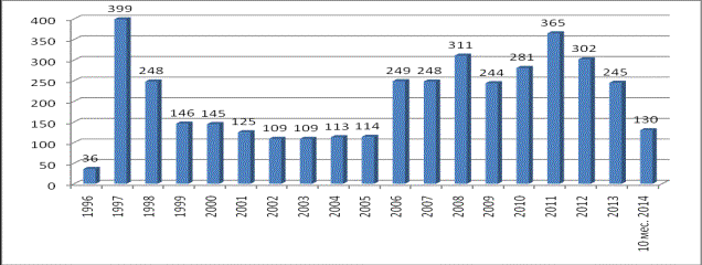 в 1999-2005 гг. Новый рост ВИЧ-инфекции наблюдался в 2006 г. – 249 случаев (рисунок 1).