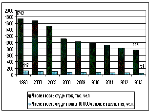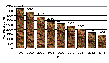 1993г. данный показатель имел значение 1742 чел., а в 2013г. – всего 54 чел.