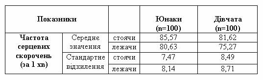 юнаки 4,94<12 (уд/хв) й дівчата 6,35<12 (уд/хв), що свідчить про функцію