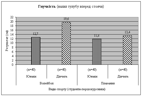 тулубу вперед із положення стоячи", тестування студентів відбувалось після