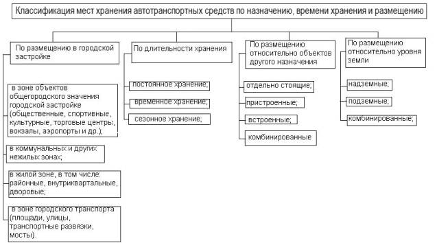 зонах современного города. На рис.1 приведена схема классификации мест хранения автотранспортных средств по