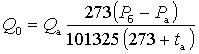 помощью уравнения (1) объемный расход, заданный при давлении P= Pб ... Pа и температуре ta, можно привести к расходу при нормальных условиях (P0 = 101325 Па, T0 = 273 К