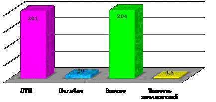 детей погибло и 273 ребенка получили ранения (рис.2). За 10 месяцев текущего года на территории области зарегистрировано 201 ДТП