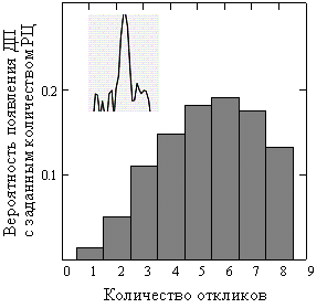 Разная ширина ДП и количество откликов от РЦ в ДП обусловлены различной угловой скоростью поворота планера ВО относительно линии визирования при полете ВО в турбулентной атмосфере [4,8].