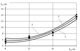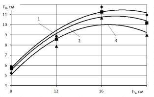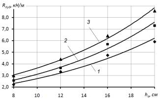 Удельное тяговое сопротивление RХуд рабочих органов с увеличением глубины хода анкерных сошников hа от 8 до 20 см повышается в 2,6-2,9 раза, рисунок 5. При увеличении скорости движения V от 8,2 до 12,1 км/с удельное тяговое сопротивление RХуд рабочих органов сеялки также возрастает в среднем в 1,3-1,5 раза.