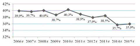 2006 году до 63% в 2015 году. Степень покрытия расходов налоговыми и