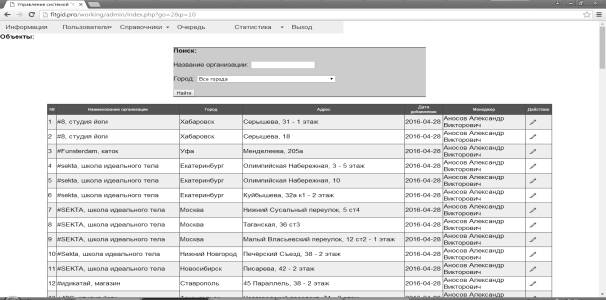 administrative part of the system "FitnessGid"
