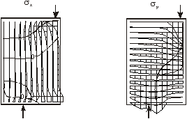 является то, что максимальные напряжения sу располагаются в вертикальном сечении по