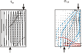 Линии максимальных касательных напряжений txy max, которые по сути являются траекториями наклонных трещин в бетоне