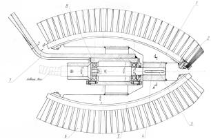 both ends. The casing is fitted on the shaft 3 by the key 4. Pads 5 of the