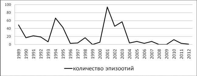 Рис. 1. Динамика проявления эпизоотий по годам