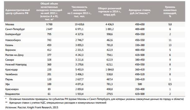 складской недвижимости в РФ может следующая таблица.