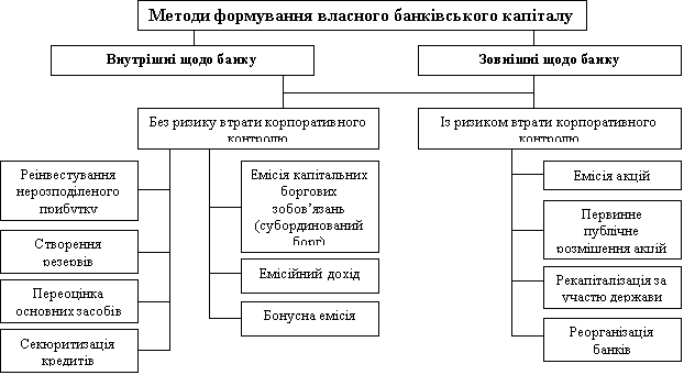 власним капіталом, які мають місце у банківській практиці – внутрішні та зовнішні