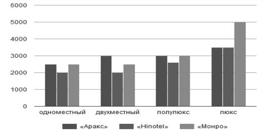 1 – Диаграмма ценовой политики гостиниц «Аракс», «Монро», и «Hinotel» в 2016г.,