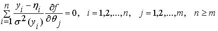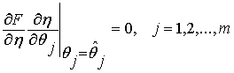 – условие ортогональности вектора касательной к функции f(ξ, θ) в точке, принимаемой за истинную, и вектора, проведенного через две
