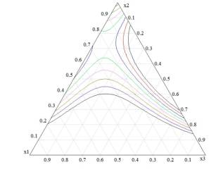 диапазонах: x1 – 40-55%, x2 – 20-35 %, x3 – 10-40 %. Для