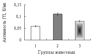 наблюдалось снижение удельной активности ГП и ГР в сыворотке крови в 1,2 и 1,3 раза