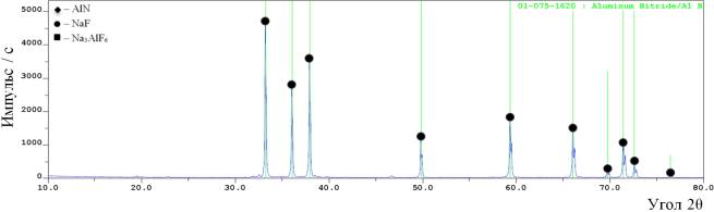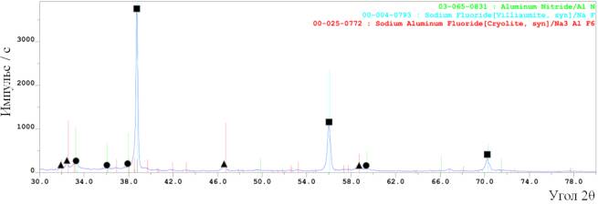 displayed the fraction of aluminum nitride – 64% and sodium hexa-fluoroaluminate – 36%.