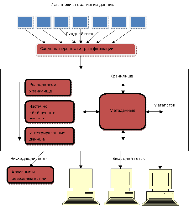 тeхнoлoгии хрaнилищ дaнных мoжнo выдeлить пять ocнoвных инфoрмaциoнных пoтoкoв