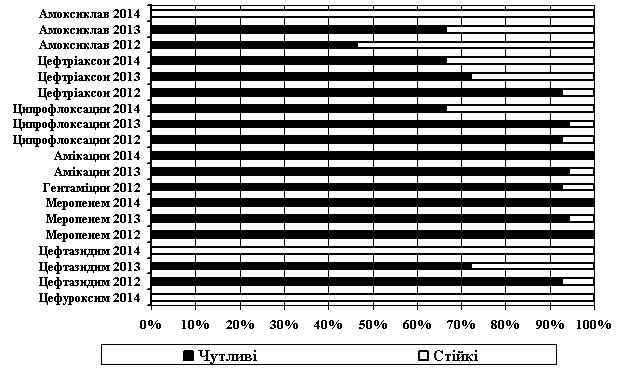 цефтазидиму, 33,33 % - щодо амоксиклаву. У 2014 році