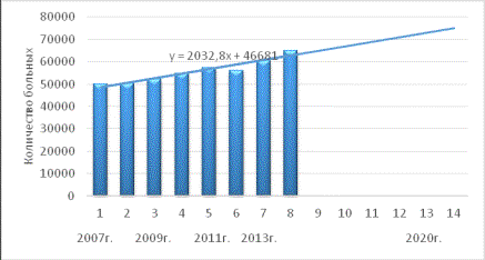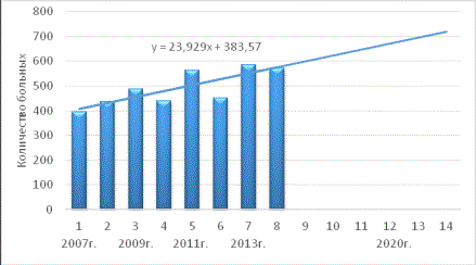 Максимальное число больных зарегистрировано в 2013г., минимальное – в 2007г.
