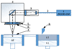 печати методом СЛС. 1 — волоконный лазер ЛК500-ОМ,