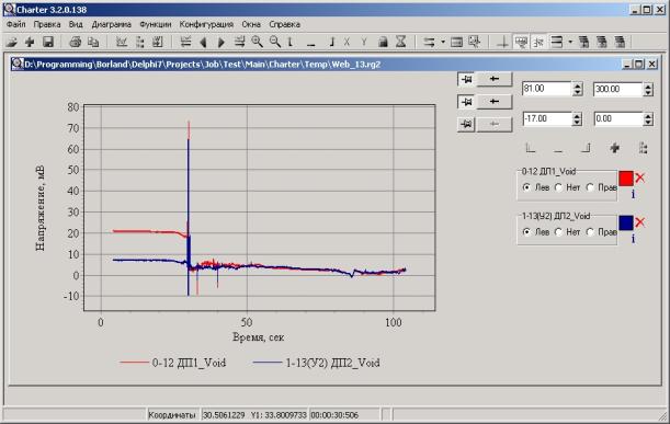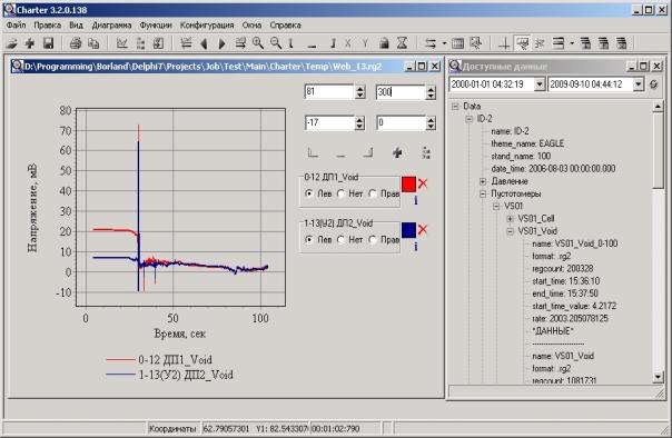 data recorded signals and processing results in form of tables and graphs,