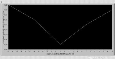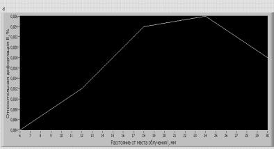 относительной деформации твердого сплава Т5К10 от расстояния от места облучения