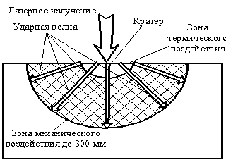 возникновения плазмы и испарения материала в месте облучения, вглубь его