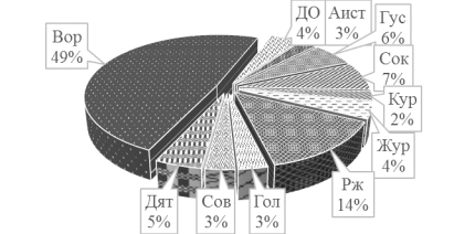 что составляет 49 % от числа всех учтённых птиц (см. рисунок).
