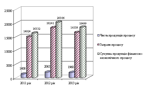 зміни затрат, чистої та сукупної продукції процесу протягом 2011 – 2013 рр. на