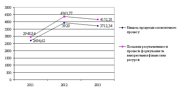 продукція процесу (загальний обсяг фінансових ресурсів) розраховується за