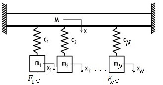 Рисунок 1 - Схема колебаний n - осцилляторов на закрепленной балке с жесткой