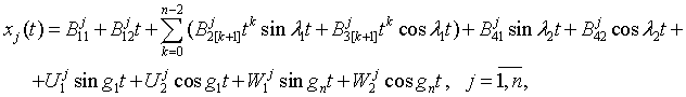 (5), (6) и в таблице 1 колебательных режимов (n+1) тел, по