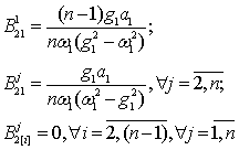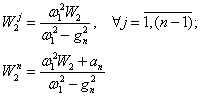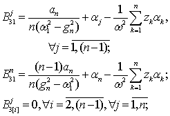 ; cij – коэффициенты упругих элементов cj-1, отнесенных к соответствующим массам mi-1,