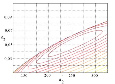 На рис.1. приведены линии уровня функций F*2(a2,b2) для поливинилиденфторидова (ПВДФ) покрытия при