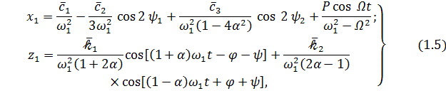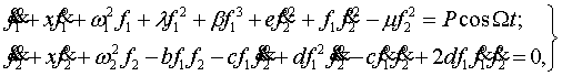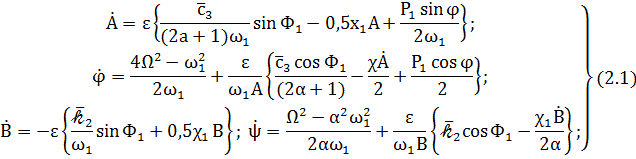 условиях внешнего резонанса и внутреннего резонанса второго порядка, т.е. ![]()