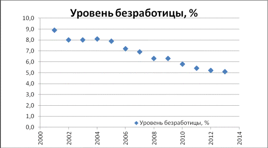 безработицы, которая в среднем уменьшается от года к году, а к концу 2013