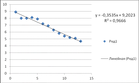 получения прогнозных оценок был построен линейный тренд, уравнение которого