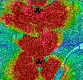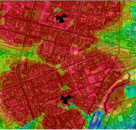 м. Київ. Центр міста забезпечуємо двома станціями eNB, та знімаємо результати покриття і максимальної пропускної