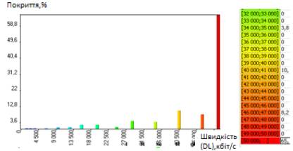 Рисунок 3- Покриття мережі у відсотках,з МІМО 2х2