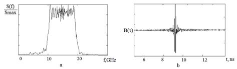spectral density, (b) – signal on the correlator output).