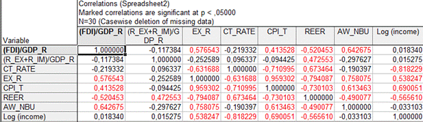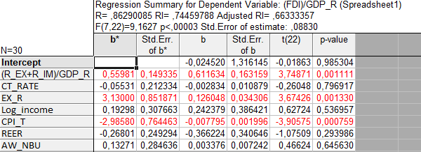 Бачимо, що дані фактори пояснюють надходження ПІІ в
